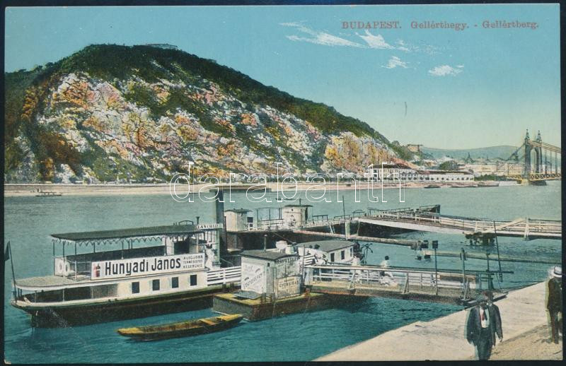 Budapest XI. Gellérthegy, Lánchíd gőzös, rajta Hunyadi János keserűvíz...