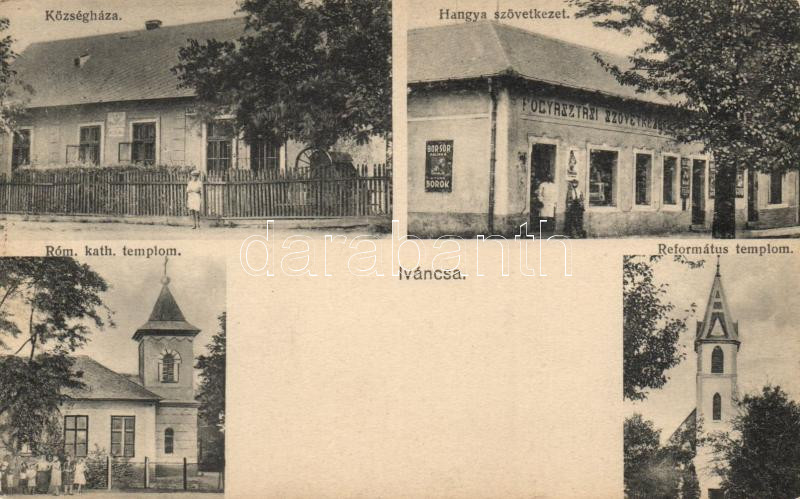 https://www.darabanth.com/en/187-Online-auction/187.0/Postcards/Hungary~3000004/Ivancsa-Kozseghaza-Hangya-Ref-templom-Rom-kat-templom-fl~II689680