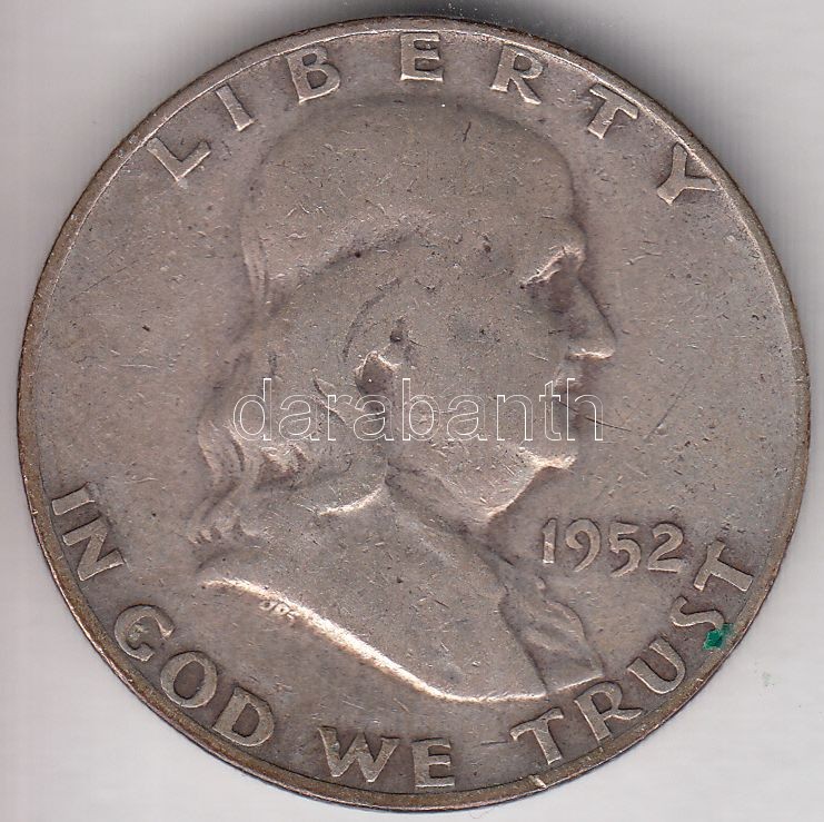 https://www.darabanth.com/en/188-Online-auction/188.0/Numismatics/Foreign-coins~300012/Amerikai-Egyesult-Allamok-1952D-12USD-Ag-Franklin-T3-3Cbr3EUSA-1952D-Half-Dollar-Ag-Franklin-C~II697443