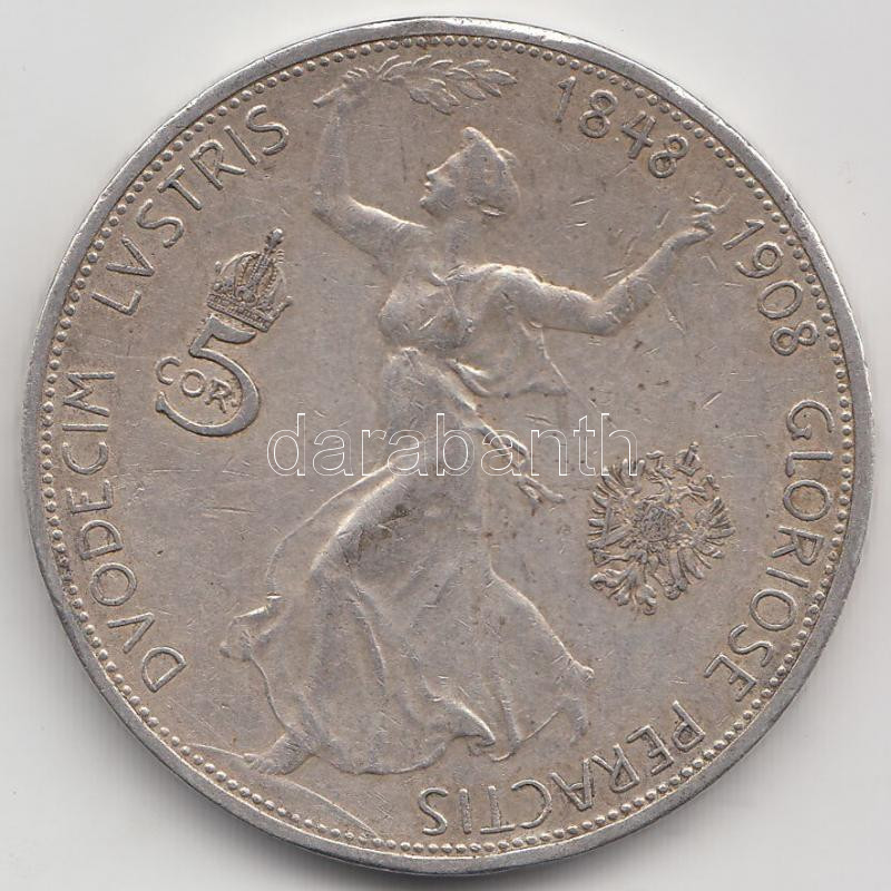 https://www.darabanth.com/en/188-Online-auction/188.0/Numismatics/Foreign-coins~300012/Ausztria-1908-5K-Ag-Jubileum-T2--3Cbr3EAustria-1908-5-Corona-Ag-Jubilee-CVF~II695942