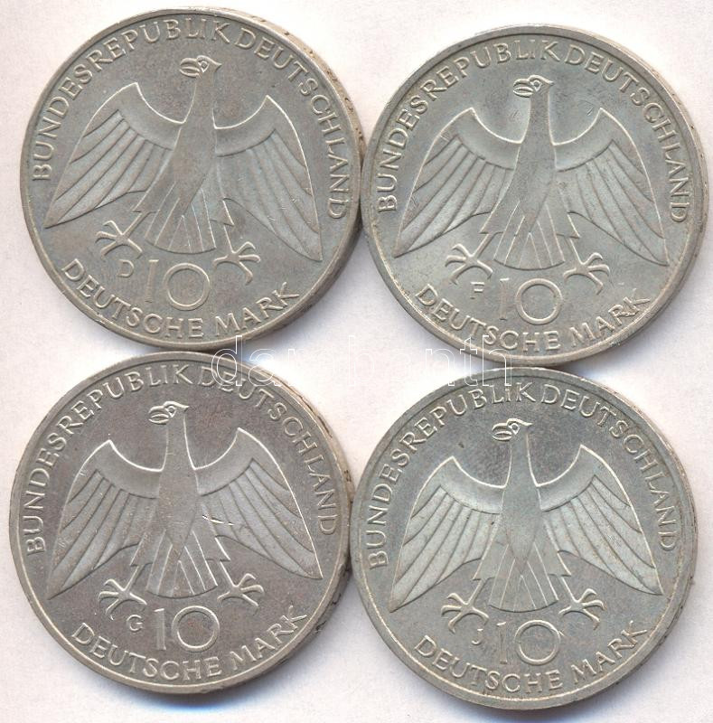 GFR 1972D-F-G-J 10 Mark Ag "Olymics Munich / Flame" (4x) in case C:XF