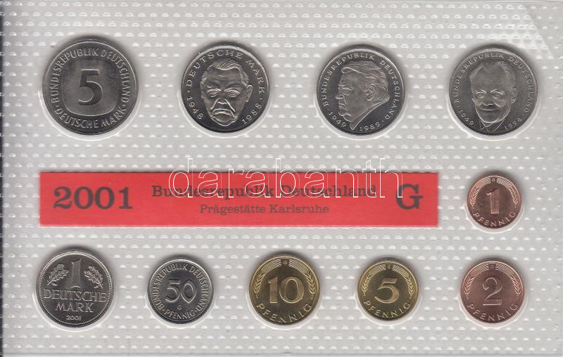 Németország 2001G 1Pf-5M 10klf db, benne 3klf 2M, forgalmi szett lamin... https://www.darabanth.com/en/188-Online-auction/188.0/Numismatics/Foreign-coins~300012/Nemetorszag-2001G-1Pf-5M-10klf-db-benne-3klf-2M-forgalmi-szett-laminalt-tokban-T1-3Cbr3EGermany~II701948