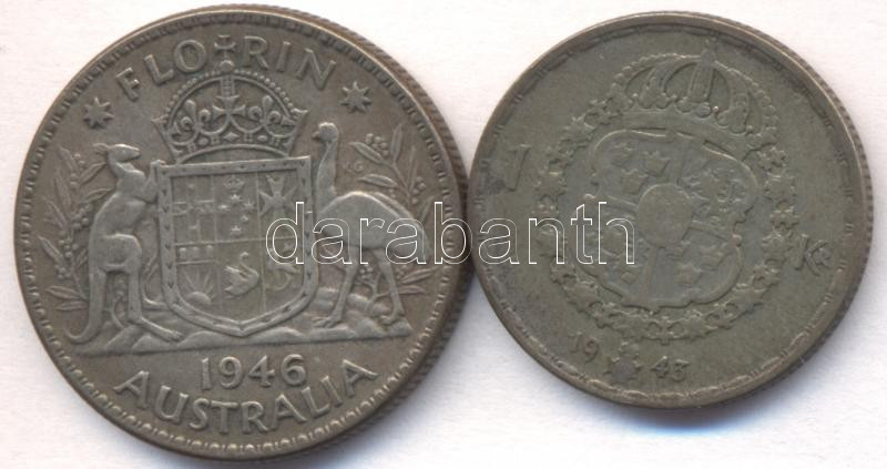 Description: Svédország 1943. 1K Ag "V. Gusztáv" + Ausztrália 1946. 1Fl Ag "VI. György" T:3