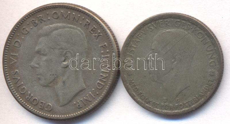 Svédország 1943. 1K Ag "V. Gusztáv" + Ausztrália 1946. 1Fl Ag "VI. Gyö... https://www.darabanth.com/en/188-Online-auction/188.0/Numismatics/Foreign-coins~300012/Svedorszag-1943-1K-Ag-V-Gusztav-plus-Ausztralia-1946-1Fl-Ag-VI-Gyorgy-T3-3Cbr3ESweden-1943~II696308