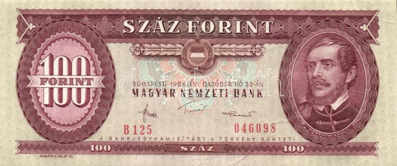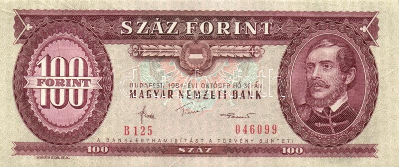 1984. 100Ft (4x) egymás utáni sorszámmal és nyomdai papírránccal és tintapettyekkel! T:I