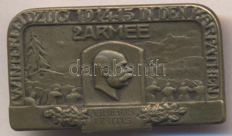 Austro-Hungarian Monarchy 1914-1915. "Winterfeldzug 1914-1915 in den Karphaten / 2.Armee / Viribus Unitis" tombac cap badge sign.: Bildh. Gurschner Wien VII/2 (23x40mm) C:XF