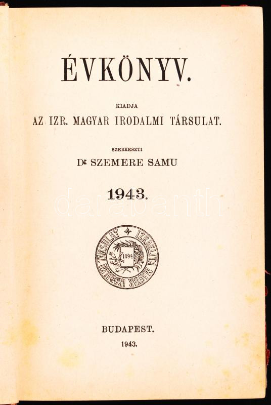 https://www.darabanth.com/en/188-Online-auction/188.0/Other-collectibles/Books-Judaica~15000032/Dr-Szemere-Samu-szerk-Evkonyv-Bp-1943-az-Izr-Magyar-Irodalmi-tarsulat-kiadasa-FelvC3~II697649