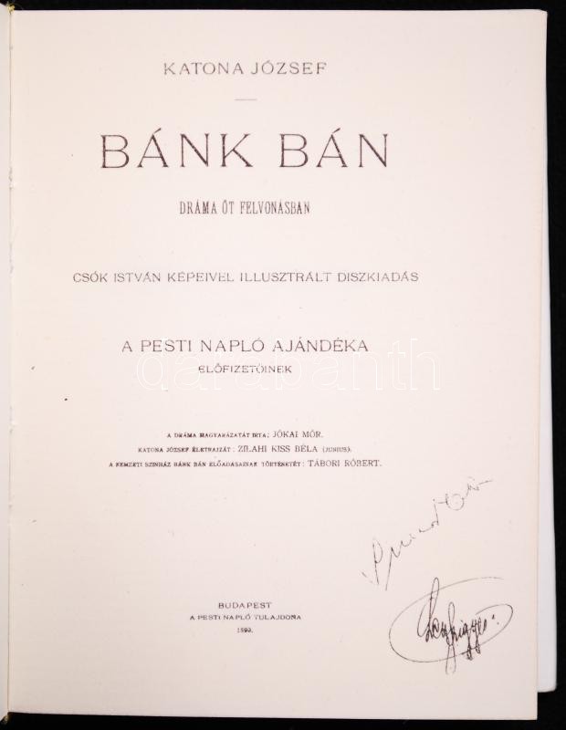 Minikönyv: Katona József: Bánk Bán. Budapest,1978, Szépirodalmi Könyvkiadó. Műbőr kötésben, papír védőborítóval, Csók István képeivel illusztrált
