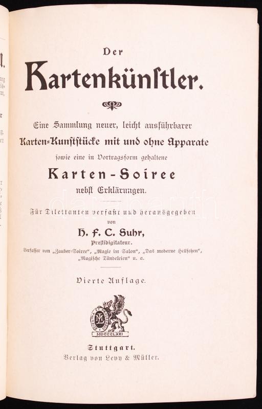 H.F.C. Suhr: Der Kartenkünstler. Stuttgart 1871. Az első karton borító...