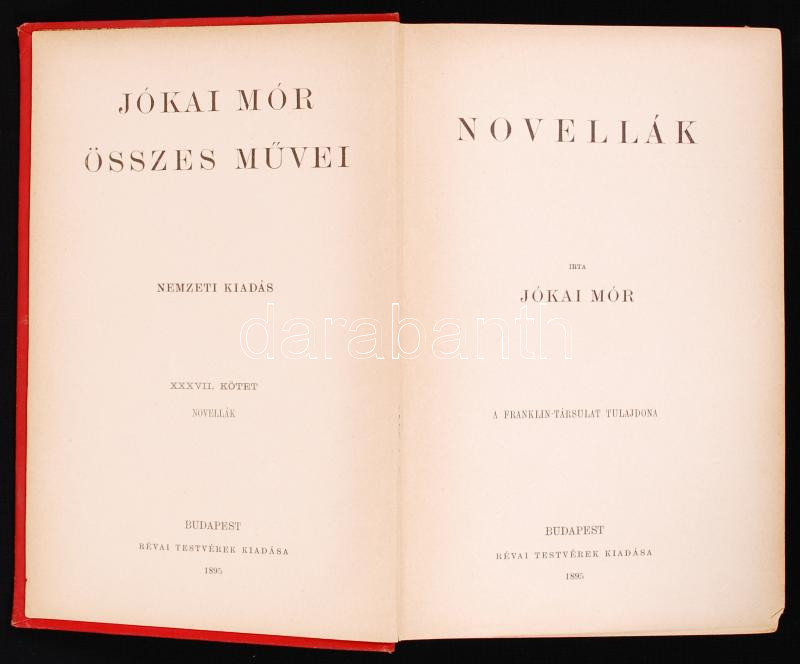 Jókai Mór Összes Művei. Nemzeti Kiadás XXXVII.: Novellák. Bp., 1895, F... https://www.darabanth.com/en/188-Online-auction/188.0/Other-collectibles/Books-Other-rarities~15000040/Jokai-Mor-Osszes-Muvei-Nemzeti-Kiadas-XXXVII-Novellak-Bp-1895-Franklin-Tarsulat--Rev~II683063