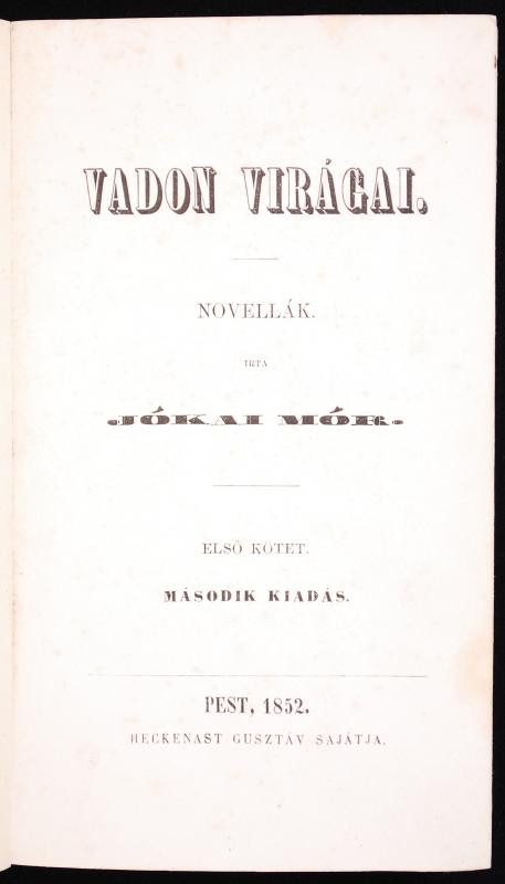 https://www.darabanth.com/en/188-Online-auction/188.0/Other-collectibles/Books-Other-rarities~15000040/Jokai-Mor-Vadon-viragai-novellak-1-2-kotet-egybekotve-2-kiadas-Pest-1852-Heckenast-k~II697334