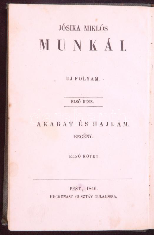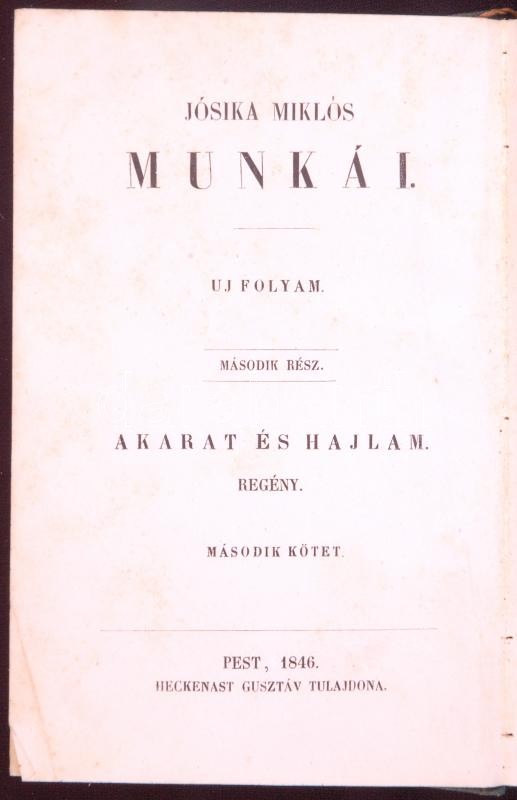Jósika Miklós: Akarat és hajlam I-II. (Jósika Miklós Munkái. Uj folyam... https://www.darabanth.com/en/188-Online-auction/188.0/Other-collectibles/Books-Other-rarities~15000040/Josika-Miklos-Akarat-es-hajlam-I-II-Josika-Miklos-Munkai-Uj-folyam-Elso-resz-Pest-19~II699310