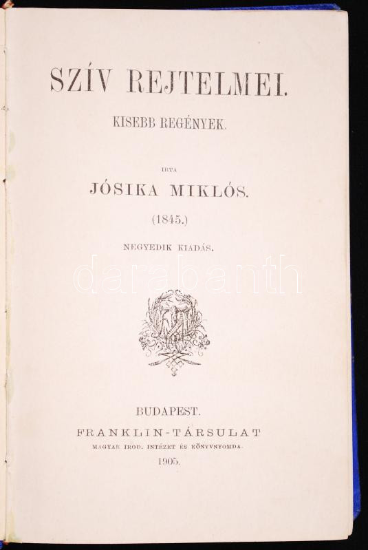 https://www.darabanth.com/en/188-Online-auction/188.0/Other-collectibles/Books-Other-rarities~15000040/Josika-Miklos1794-1865-Sziv-rejtelmei-4kiadas-Budapest-1905-Magyar-IrodIntezet-es-ko~II697326