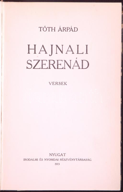 https://www.darabanth.com/en/188-Online-auction/188.0/Other-collectibles/Books-Other-rarities~15000040/Toth-Arpad-Hajnali-szerenad-Versek-Budapest-1913-Nyugat-Irodalmi-es-Nyomdai-Reszvenytar~II699262