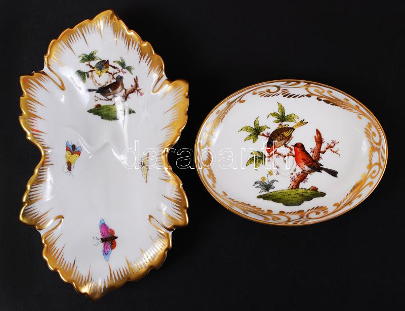2db, Rothschild-mintás, kézzel festett, aranyozott, jelzett Herendi tálka /