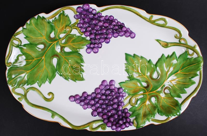 Hollóházi Exkluzív porcelán tál, jelzett, kézzel festett, domború mintázattal, arany szegéllyel, hibátlan állapotban / marked, hand painted, exclusive, porcelain bowl 51cm