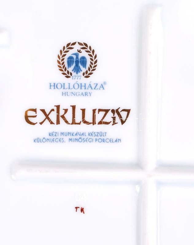 Hollóházi Exkluzív porcelán tál, jelzett, kézzel festett, domború mint...