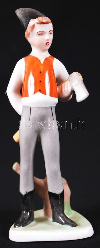 Kézzel festett, jelzett, Hollóházi pásztor fiúcska / Hand painted, marked, shepherd boy 16cm