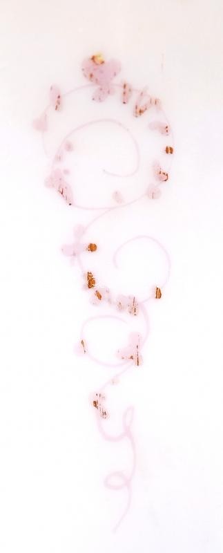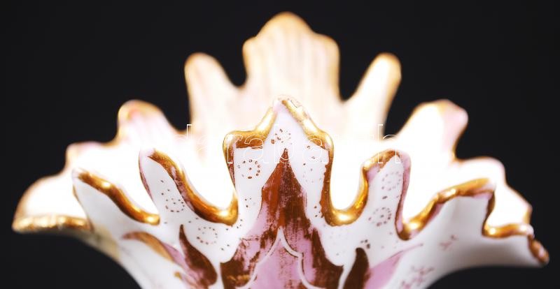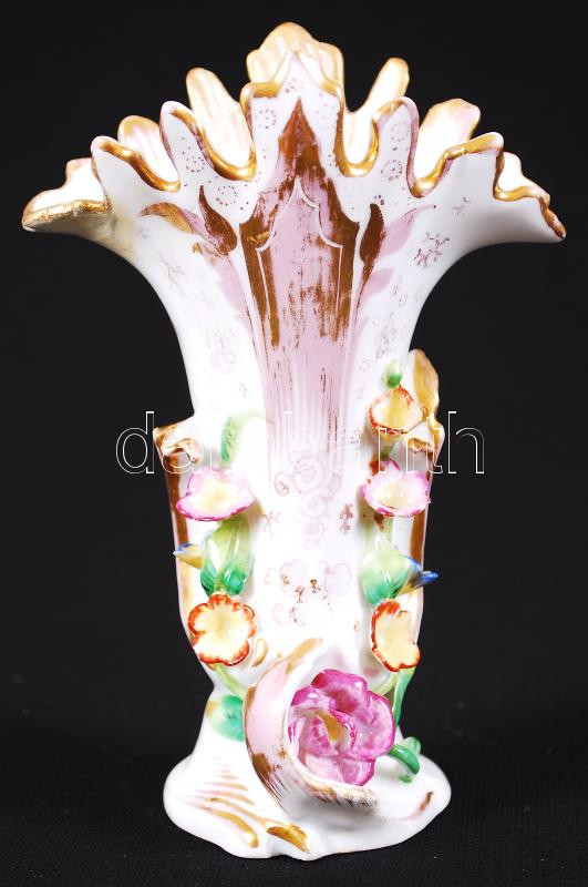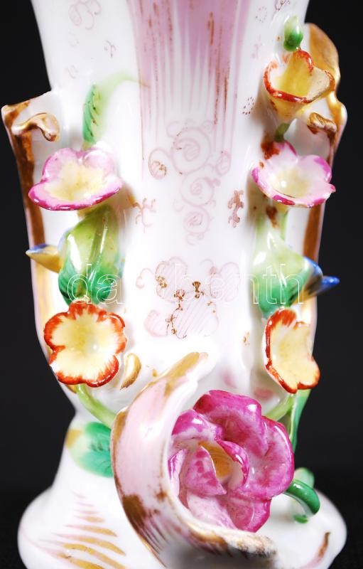 Régi, kézzel festett, aranyozott porcelán vázácska plasztikus virágdís...
