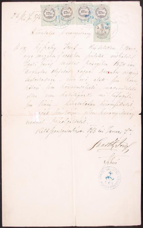 1873 hatósági bizonyítvány 53kr okmánybélyeggel Somogy vármegye szolga...