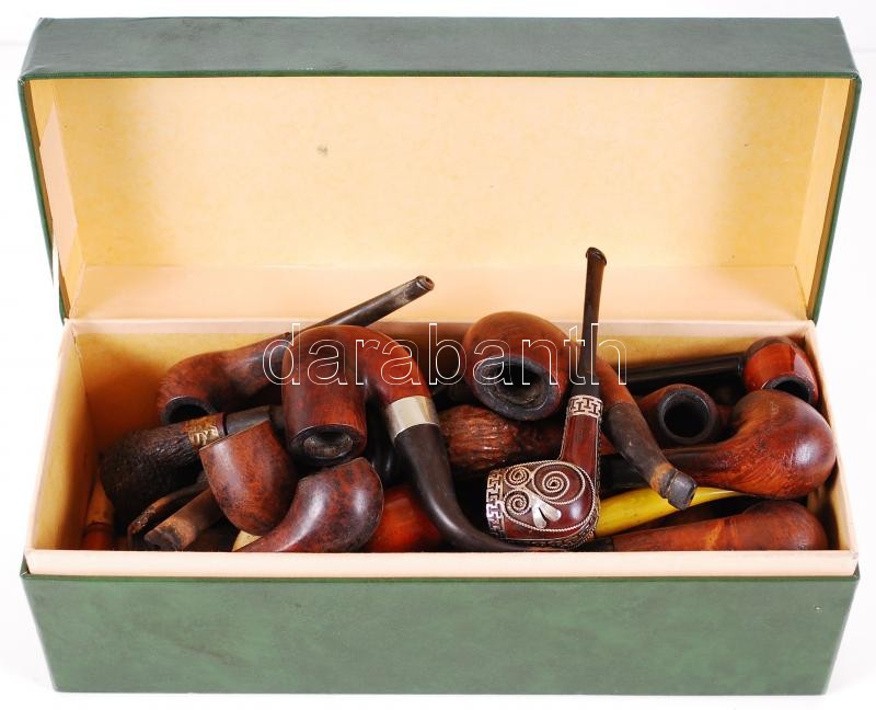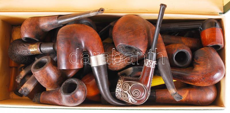 25 darabos nagy pipa gyűjtemény dobozban. márkás, érdekes darabokkal