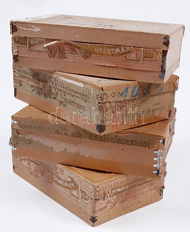 4 db régi papír dohánydoboz (tollal ráirkálva)