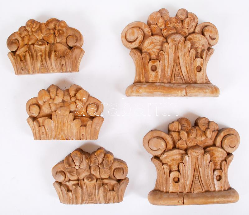 5db faragott fa dísz, bútorelem / carved wooden decoration