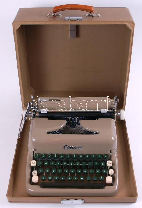 cca 1960 Consul Portable táskaírógép eredeti dobozában, tisztítószette... https://www.darabanth.com/en/188-Online-auction/188.0/Other-collectibles/Flea-Market~15000011/cca-1960-Consul-Portable-taskairogep-eredeti-dobozaban-tisztitoszettel-nemet-nyelvu-leir~II695011
