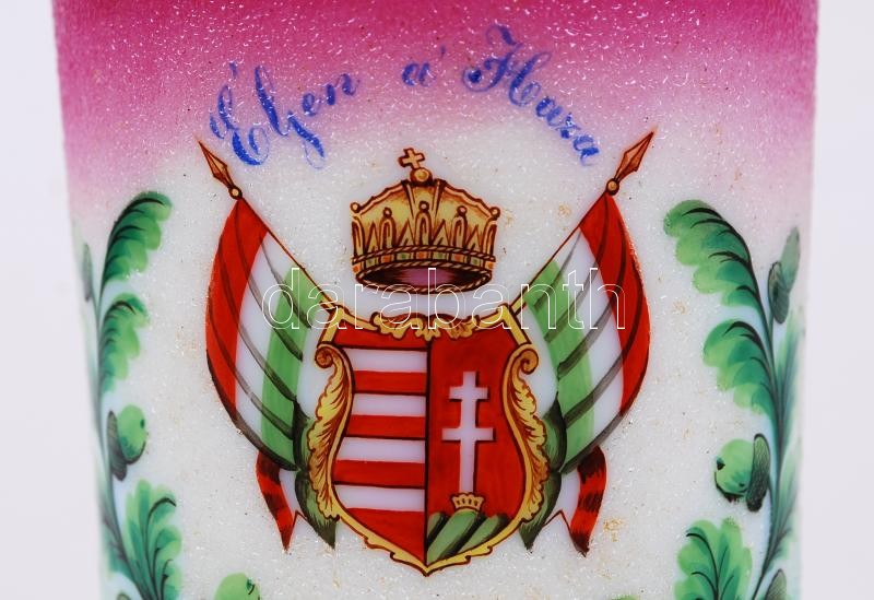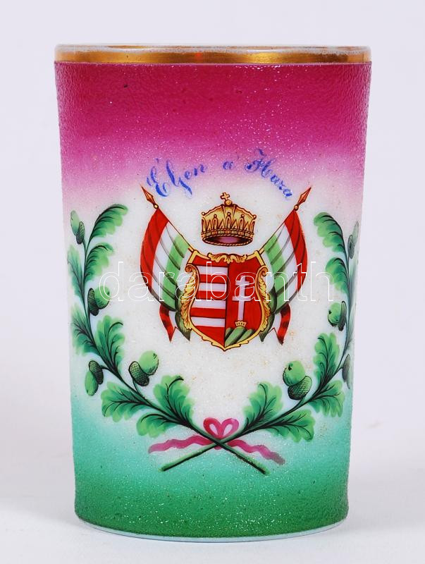 Emlék pohár, több rétegű, matricás, homok fújt, hibátlan, m:12 cm