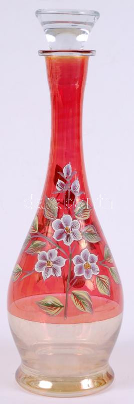 Kézzel festett, virágokkal díszített borosüveg dugóval/ Hand painted wine bottle with floral decorations, 30 cm