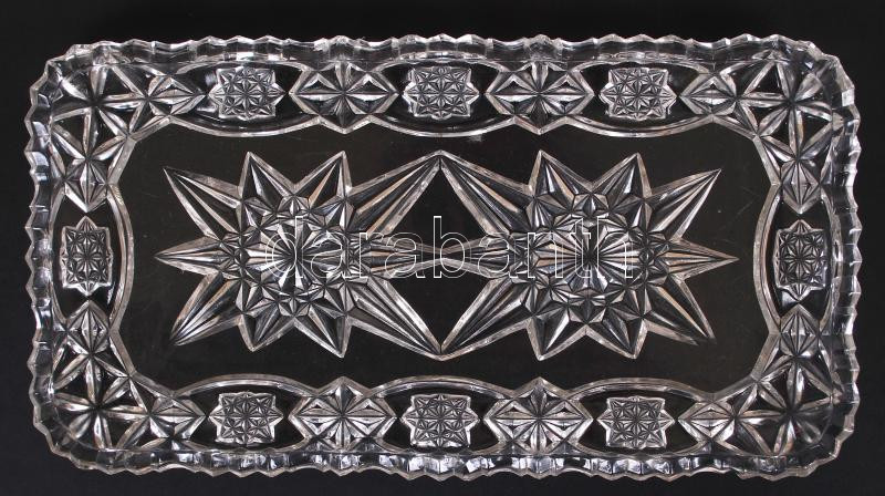 Ólomkristály tálca, formába öntött, hibátlan, h:34 cm