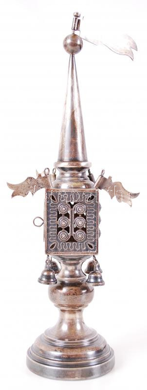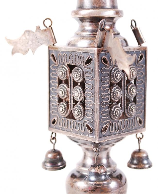 Judaika kegytárgy: Ezüst (Ag.) tornyos bessamim tartó, jelzett, m:24 cm, nettó: 151 g / Silver besamim holder