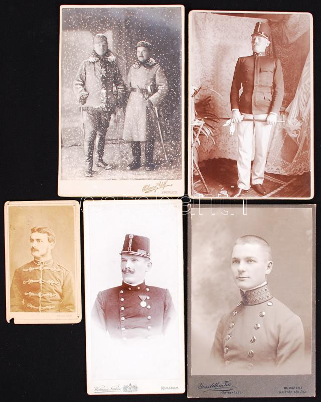 1920-1940 5db régi, keményhátú katonai fotó (vizitkártya és kabinetfotó méretben)