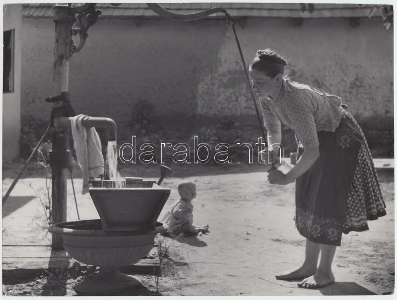 1939 Járai Rudolf (1913-1993): Fürdetés Kerepesen. Vintage alkotás, hátoldalán szerzői pecséttel, aláírással, 18x24cm