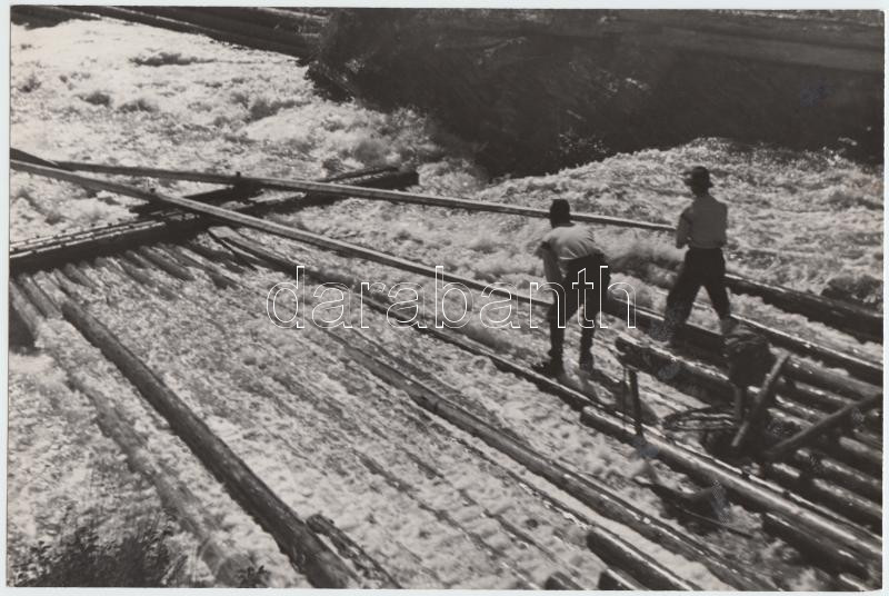 cca 1940 Osoha László: Tiszai tutaj. Vintage fotó, hátoldalán szerzői ...