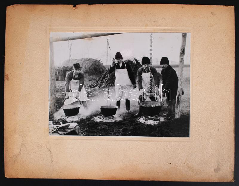 cca 1950 Birkapörkölt a TSZ látványkonyhájában. 18x24 cm-es méretben, kasírozva.