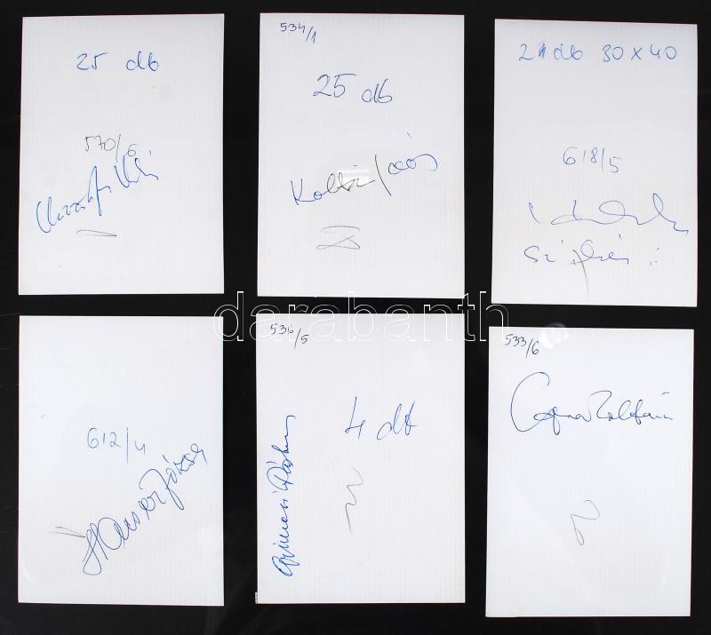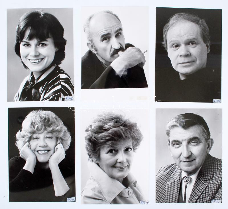 Description: cca 1970 6db ff portrékép színészekről, hátoldalán minden kép a modell által aláírva. (Koltay János, Hűvösvölgyi Ildikó, Harkányi Endre, Hacser Józsa, Gyimesi Pálma, Gera Zoltán). 10x15 cm.