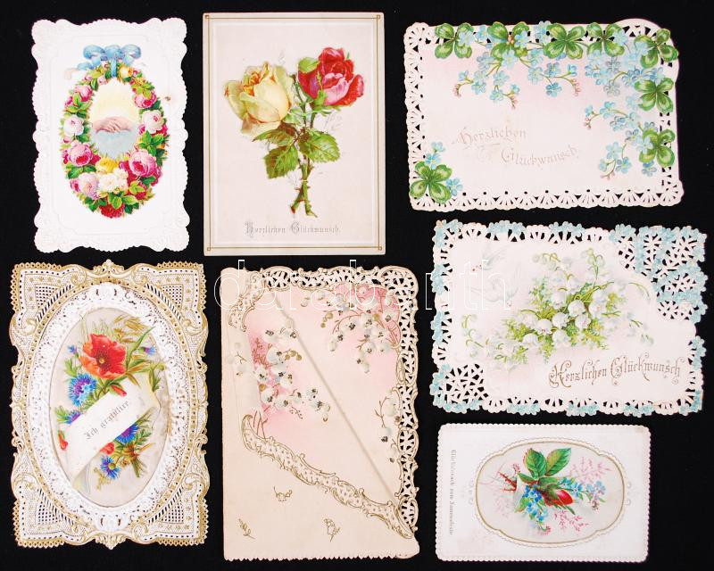 Cca 1910 hét darab csipkeszélű szerencsekívánság lapocska