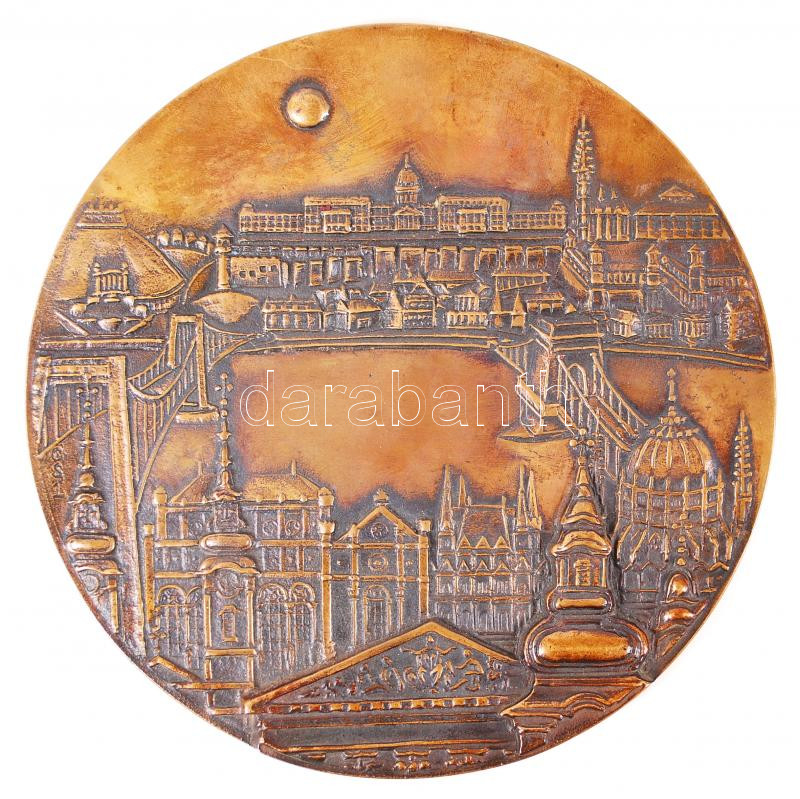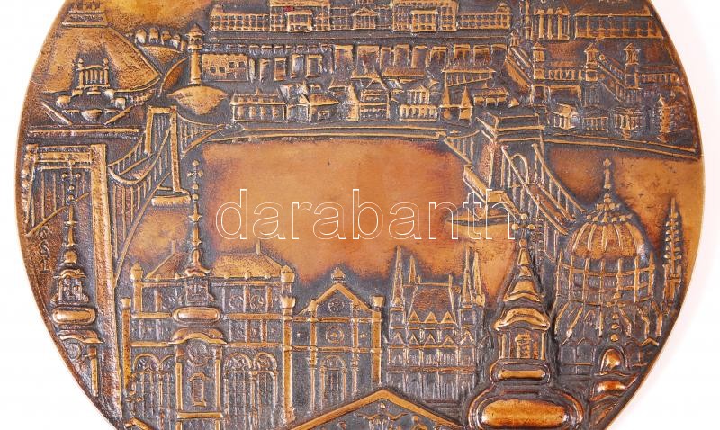 Csontos László (1925): Budapest. Bronz falidísz / Budapest bronze ornament d:20 cm