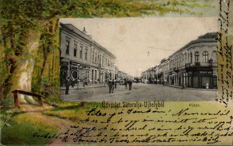 Sátoraljaújhely Főtér, floral litho (ázott / wet damage)