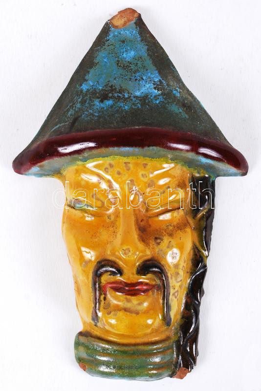 Art-deco kínai férfi fej, fali kerámia, sérült, m:22 cm