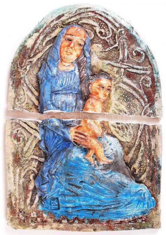 Kun Éva (1948): Fali kerámia. Törött, 16x24cm