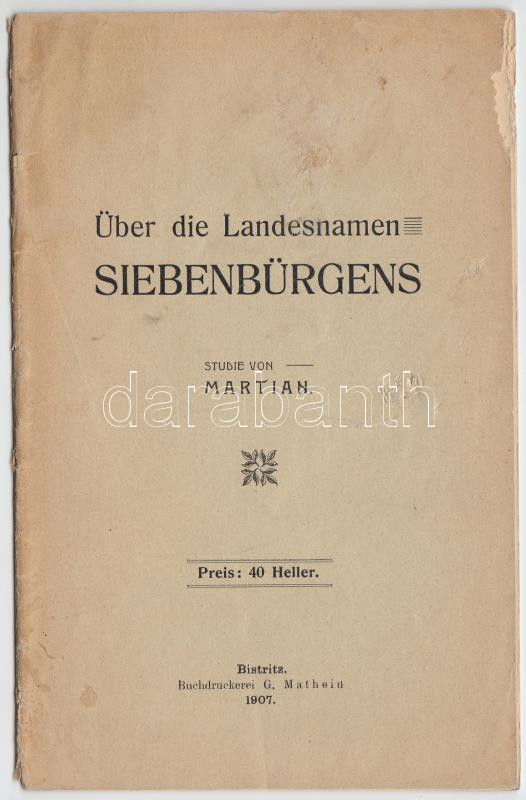 https://www.darabanth.com/en/189-Online-auction/189.0/Other-collectibles/Books-History~4000037/Martian-Uber-die-Landesnamen-Siebenburgens-Bistritz-1907-G-Mathieu-Fuzve-papirboritoban~II706271
