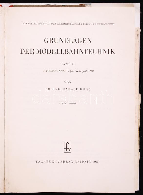Dr.-Ing. Harald Kurz: Grundlagen der Modellbahntechnik II. Modellbahn-Elektrik für Nenngröße H0. Mit 205 Bildern. Leipzig, 1957, Fachbuchverlag. Illusztrált kézikönyv modellvasút javításához, kiadói félvászon kötésben, védőborítóval (viseltes állapotú) /