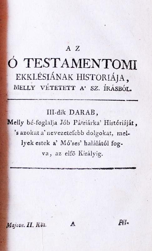 Description: Majzonett Lajos: Az ó testamentomi ekklésiának históriája, a' sz. írás szerént. Az első embertől fogva, a' Babilóniai fogságból lett vissza-térésig. Ford. Pétzeli Jó'sef. III. köt.