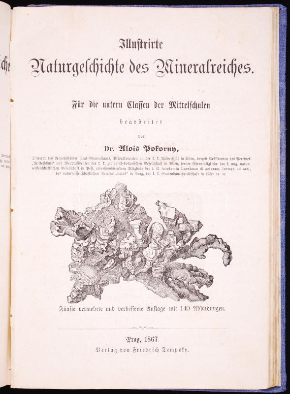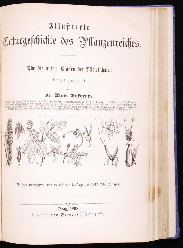 Dr. Alois Pokorny: Illustrierte Naturgeschichte des Thierreiches; Illustrierte Naturgeschichte des Pflanzenreiches; Illustrierte Naturgeschichte des Mineralreiches. Prag, 1868, Friedrich Tempsky. A három kötet egybekötve, amatőr vászonkötésben