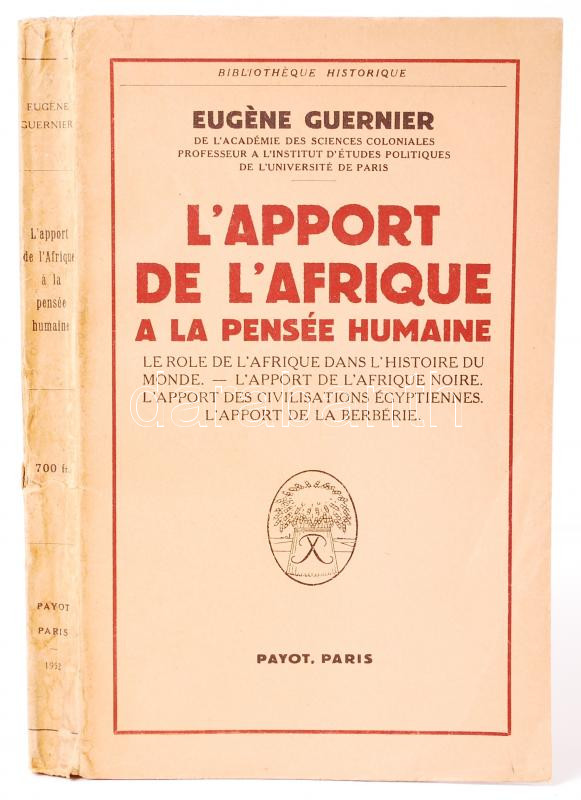 Eugéne Guernier: L'apport de L' Afrique a la pensée humanie. Paris, 1952, Payot. Kiadói papírkötésben /