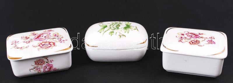 Hollóházi bonbonier, jelzett, matricás, hibátlan, összesen: 3db
