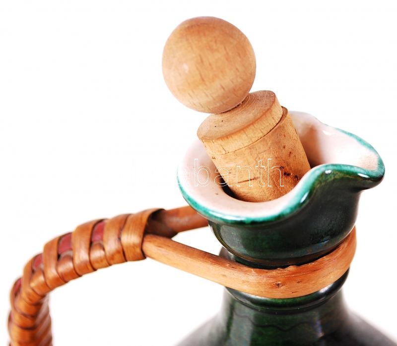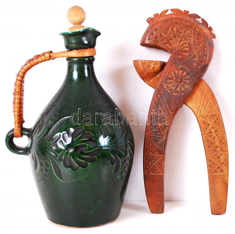 Faragott mogyorótörő és egy zöld mázas kerámia kiöntő fa dugóval, hibátlan