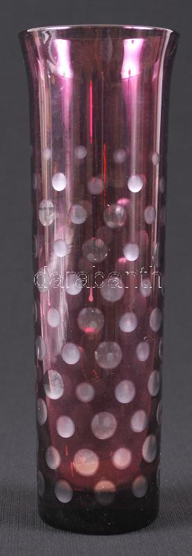 Többrétegű lila váza, hámozott, hibátlan, m:21 cm, d:6 cm